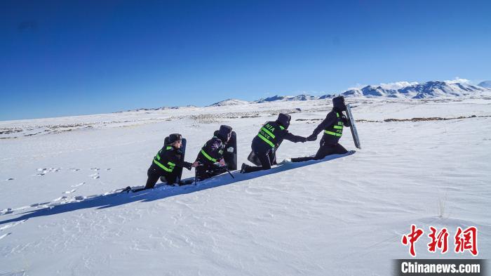 又經(jīng)過2個(gè)多小時(shí)的艱難跋涉,巡邏隊(duì)終于抵達(dá)目的地點(diǎn)位。勘察、鏟雪、描紅……一個(gè)環(huán)節(jié)也不能出錯(cuò),界碑就是生命,就是戍邊人的信仰。