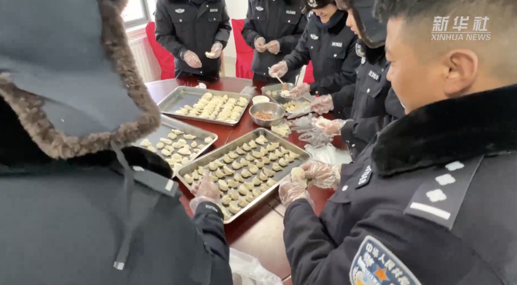 普瑪江塘邊境派出所的民警們?yōu)榱擞有履辏黄鹪诤0巫罡叩泥l(xiāng)包餃子,感受著節(jié)日里的團(tuán)圓氛圍。