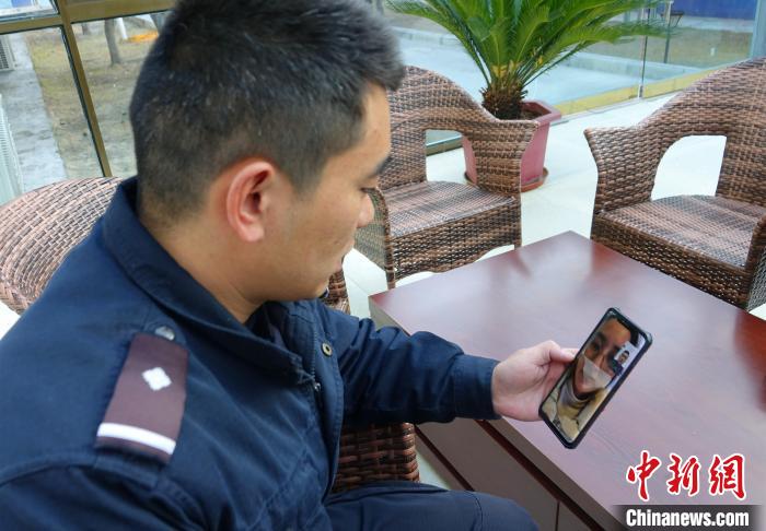 金東邊境派出所民警與家人視頻通話。冉文娟 攝