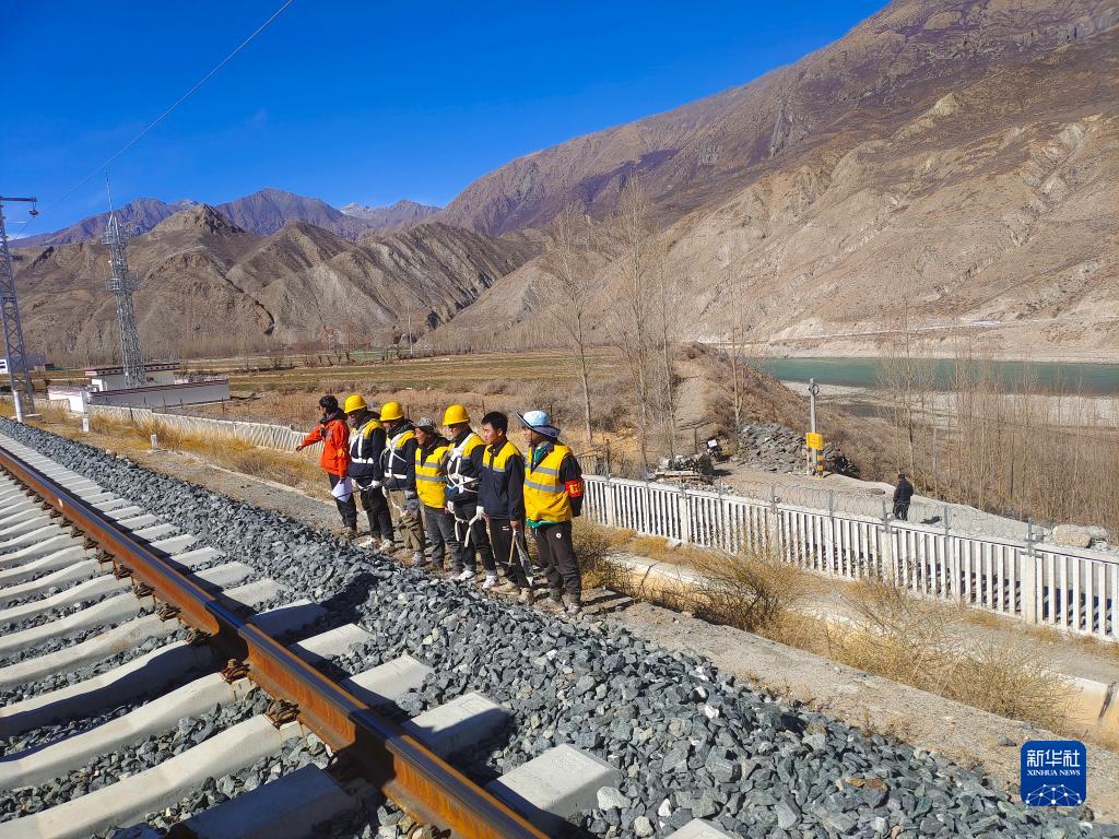 冬日暖陽下的雅魯藏布江河谷靜謐安詳,深峽江流澄碧蜿蜒,復(fù)興號在拉林鐵路上疾馳而過。火車從隧道里穿過,急促的哨音吹響,加查橋隧工區(qū)工長仁青次仁和工友們開始每天例行的橋隧設(shè)備養(yǎng)護(hù)工作。