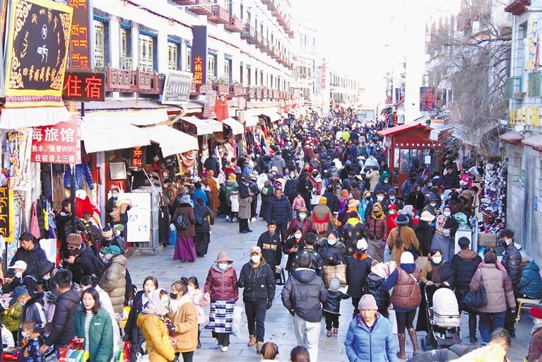 沖賽康市場(chǎng)、八廓商城、拉薩市區(qū)各大小超市……熱鬧非凡、人頭攢動(dòng),處處都是為了采購(gòu)藏歷新年年貨樂此不疲的居民群眾,耳邊盡是熟悉的吆喝聲,到處都是歡樂與喜慶。