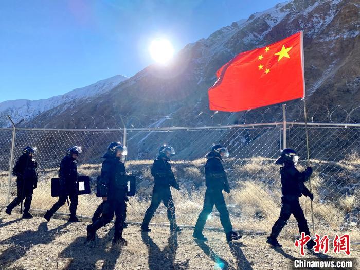 圖為普蘭邊檢站民警在邊境國門巡邏?!「駸?攝