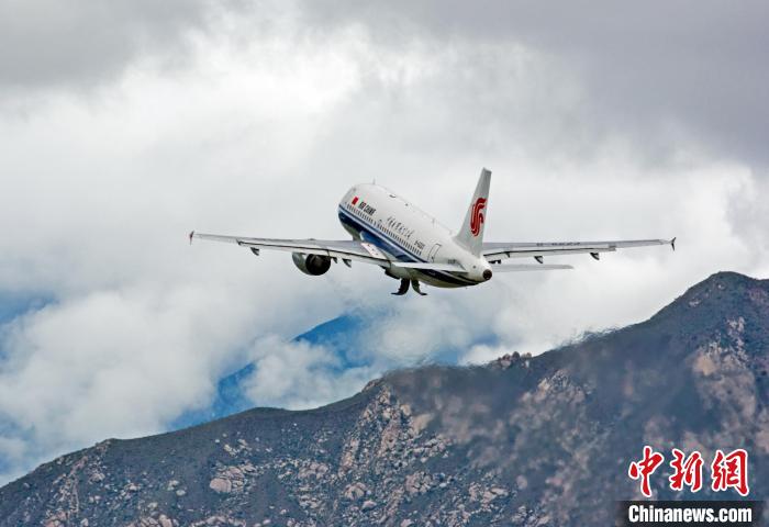 國航西南分公司A319飛機從拉薩貢嘎國際機場起飛。國航西南分公司 供圖
