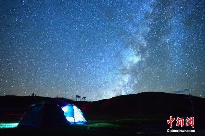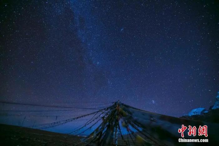 西藏林芝魯朗小鎮(zhèn)夜空璀璨。中新社記者 何蓬磊 攝