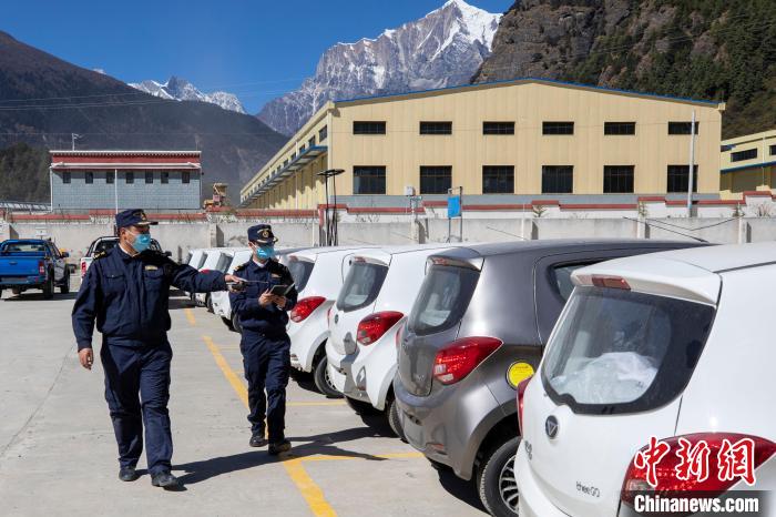 圖為拉薩海關關員在吉隆口岸出口貨物查驗場監(jiān)管出口國產(chǎn)電動車。資料圖 拉薩海關供圖