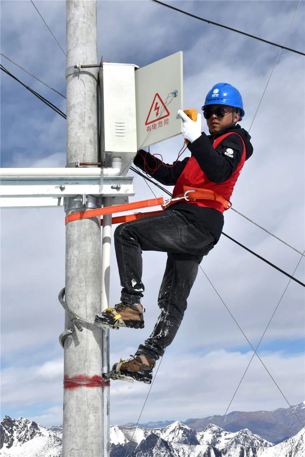 西藏洛扎縣供電公司技術(shù)員在檢修供電線路(1月17日攝)。新華社記者 陳尚才 攝