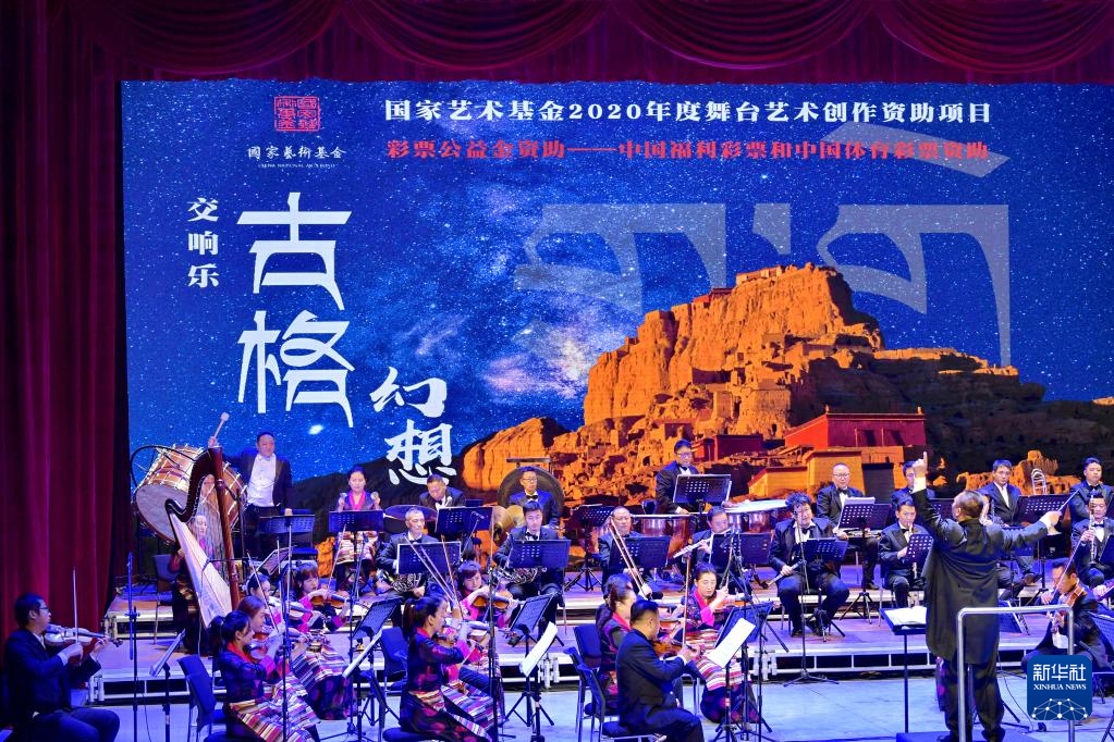 4月3日,國(guó)家藝術(shù)基金2020年度舞臺(tái)藝術(shù)創(chuàng)作資助項(xiàng)目——交響樂《古格幻想》在拉薩市的藏戲藝術(shù)中心首演。