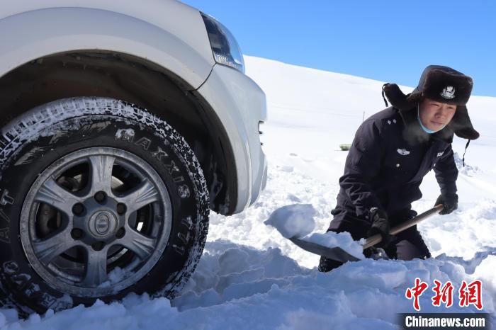 圖為亞熱邊境派出所民警救助被困車(chē)輛。日喀則邊境管理支隊(duì) 攝