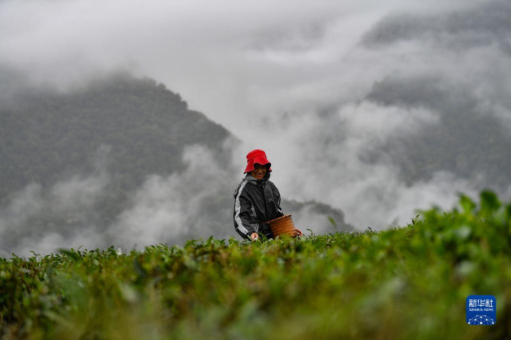 西藏林芝市墨脫縣德興鄉(xiāng)荷扎村的村民貢桑拉姆在采茶(4月16日攝)。27歲的門巴族姑娘貢桑拉姆家有十余畝茶田,僅依靠茶葉,她家每年能增收兩萬余元。新華社記者 晉美多吉 攝