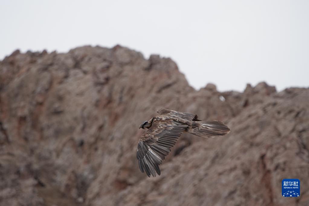 這是在西藏班戈縣拍攝的一只胡兀鷲(4月13日攝)。新華社記者 洛卓嘉措 攝