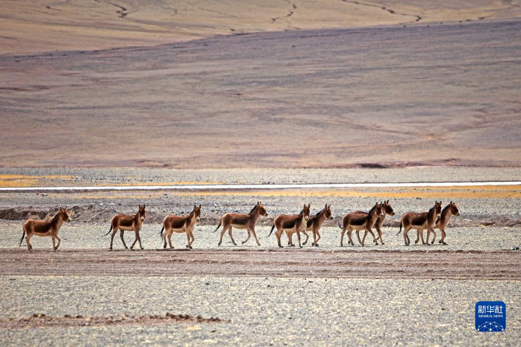 這是在西藏阿里革吉縣拍攝的一群藏野驢(4月12日攝)。新華社記者 姜帆 攝
