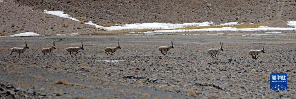 這是在西藏日土縣拍攝的一群藏羚羊(4月9日攝)。新華社記者 姜帆 攝