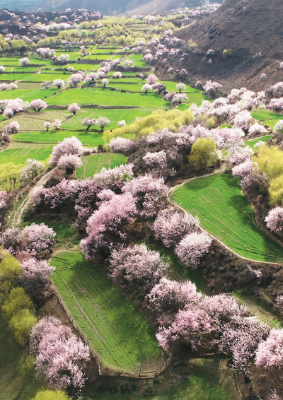 嘎拉村有上百畝野桃樹,每年春天,桃花盛開、青稞吐綠、落英繽紛,這里又被稱為“桃花村”。近年來,依托毗鄰318國道優(yōu)勢和漫山遍野的桃樹資源,嘎拉村大力發(fā)展旅游產(chǎn)業(yè),積極推動(dòng)鄉(xiāng)村振興。“我們不光生活環(huán)境好,生活水平更是‘呀咕嘟’(藏語“非常好”)。能有今天幸福的生活,大家更是有太多的‘突及其’(藏語“感謝”)?!备吕妩h支部書記邊巴開心地說。