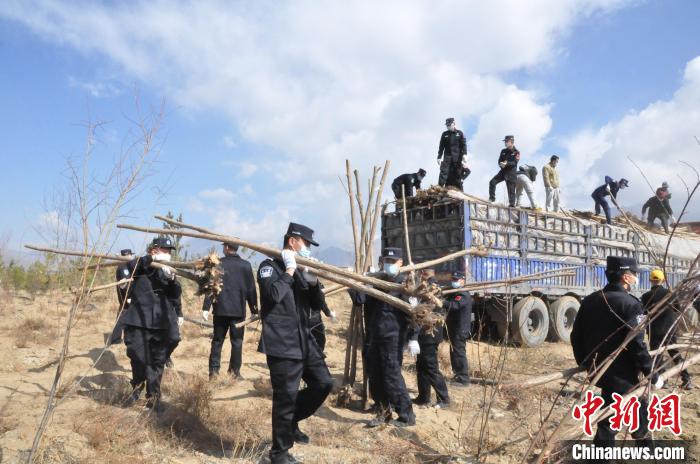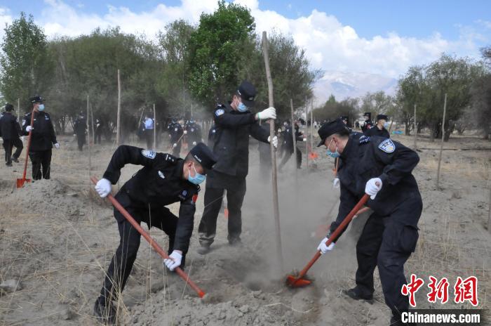 圖為西藏邊檢總站輪訓(xùn)大隊(duì)民警植樹(shù)活動(dòng)現(xiàn)場(chǎng) 。西藏邊檢總站輪訓(xùn)大隊(duì)供圖