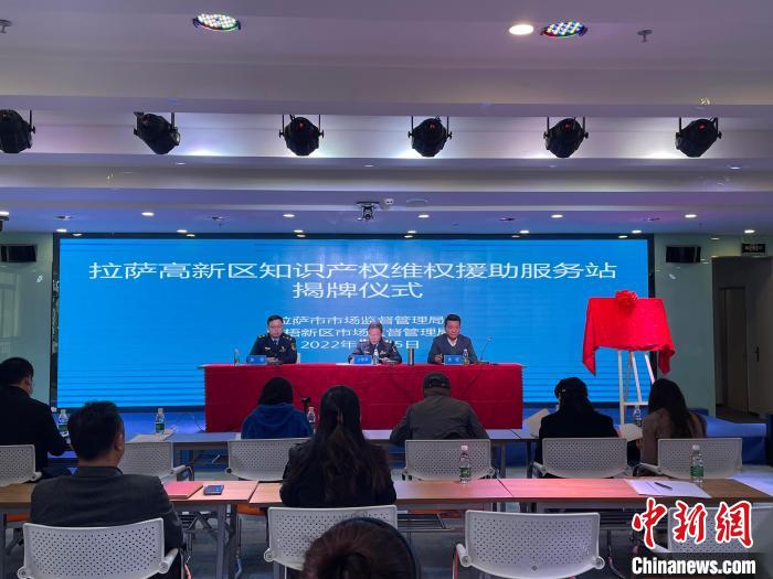 圖為拉薩市高新區(qū)知識(shí)產(chǎn)權(quán)維權(quán)援助服務(wù)站揭牌儀式現(xiàn)場。貢嘎來松 攝