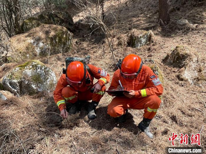 圖為消防救援人員攜裝巡護(hù)。洛桑頓珠 攝