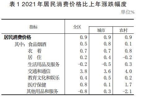 全年全區(qū)居民消費價格比上年上漲0.9%。商品零售價格上漲1.5%。工業(yè)生產(chǎn)者出廠價格上漲1.5%。