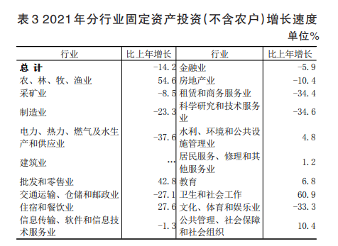 全年固定資產(chǎn)投資總額比上年下降14.2%。按產(chǎn)業(yè)分,第一產(chǎn)業(yè)投資增長56.3%,第二產(chǎn)業(yè)投資下降29.7%,第三產(chǎn)業(yè)投資下降13.1%。按經(jīng)濟類型分,國有經(jīng)濟投資下降12.5%,集體經(jīng)濟投資增長21.0%,個體經(jīng)濟投資下降78.2%,其他各種經(jīng)濟類型投資增長53.6%。全年民間投資增長0.7%。