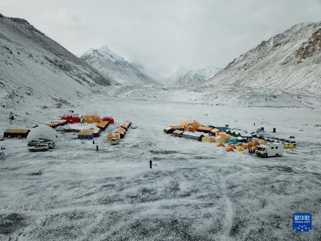 珠峰登山大本營(yíng)(4月30日攝,無(wú)人機(jī)照片)。新華社記者 姜帆 攝