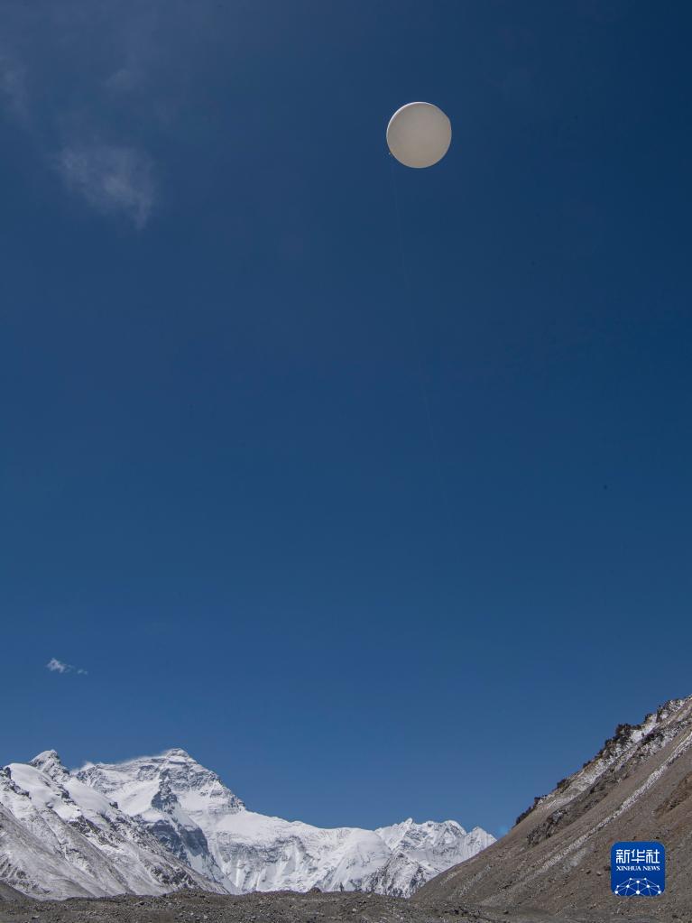 這是在珠峰登山大本營(yíng),科研人員施放的大氣臭氧探空氣球(5月3日攝)。新華社記者 孫非 攝