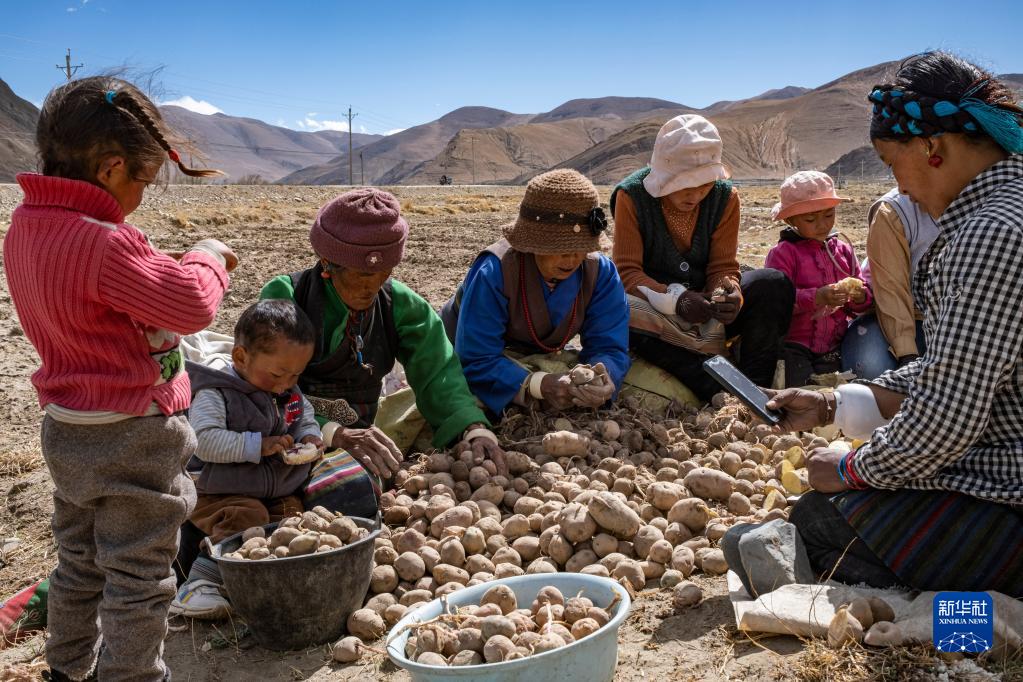 西藏定日縣扎西宗鄉(xiāng)日白拉新村的村民在播種土豆(5月10日攝)。新華社記者 孫非 攝