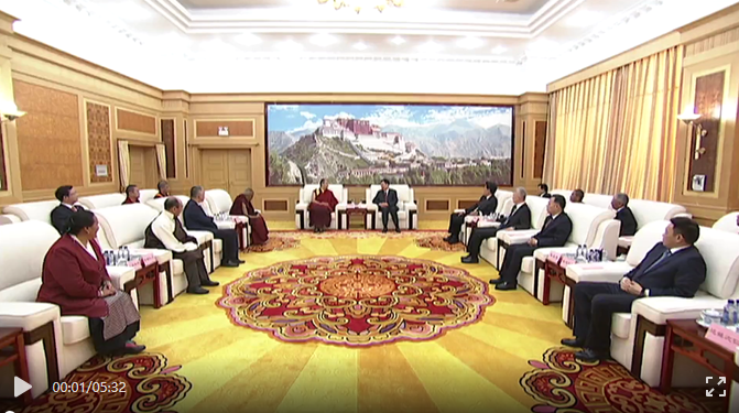 近日,西藏自治區(qū)黨委書記王君正在拉薩會見班禪額爾德尼·確吉杰布。 自治區(qū)領(lǐng)導(dǎo)洛桑江村、莊嚴、陳永奇、嘎瑪澤登、達娃次仁、甲熱·洛桑旦增、珠康·土登克珠、薩龍·平拉、索朗仁增一同會見。