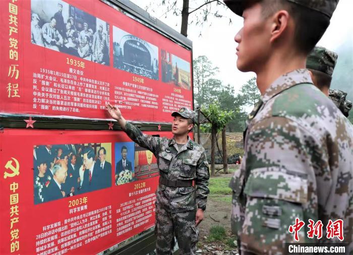 西藏軍區(qū)某旅某分隊駐扎在林芝某地,這里高山聳立、河谷縱橫、云霧繚繞,極端復(fù)雜的環(huán)境無聲地訴說著當年壯烈的場景。該分隊指導(dǎo)員結(jié)合駐地紅色資源,邀請當?shù)乩宵h員為連隊官兵們上了一堂生動的黨史軍史教育課。