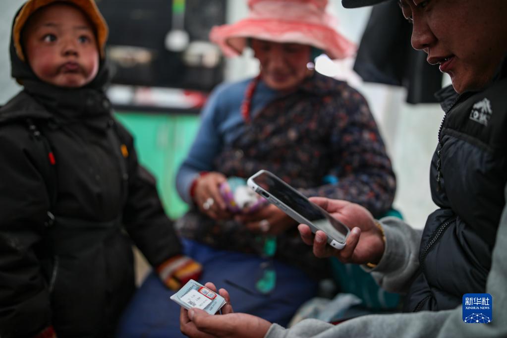 在西藏那曲市比如縣良曲鄉(xiāng)然木塘村蟲草采集點,工作人員在幫助牧民其美嘎德進(jìn)行蟲草采集登記,以便進(jìn)行總量統(tǒng)計(5月25日攝)。新華社記者 姜帆 攝