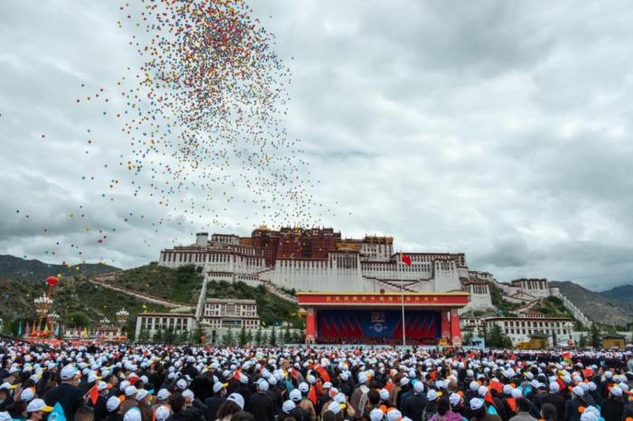 2021 年8 月19 日,慶祝西藏和平解放70 周年大會(huì)在拉薩布達(dá)拉宮廣場舉行。 本報(bào)記者 江飛波 攝