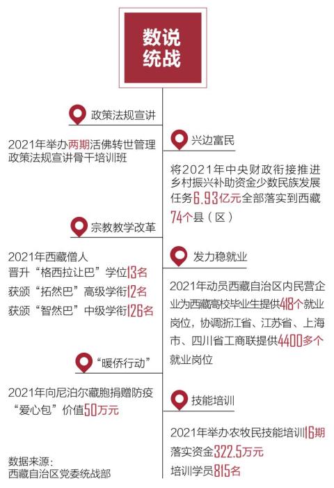 西藏自治區(qū)黨委統(tǒng)戰(zhàn)部介紹,2022年,全區(qū)統(tǒng)戰(zhàn)系統(tǒng)以全力服務(wù)迎接黨的二十大為主線,持續(xù)深化反分裂斗爭,確保國家安全和長治久安。加大活佛轉(zhuǎn)世政策法規(guī)宣傳宣講力度,牢牢掌握反分裂斗爭全局主動(dòng)性。在鑄牢中華民族共同體意識(shí)上見行見效,有效抵御各種極端、分裂思想的滲透,堅(jiān)決防范民族領(lǐng)域重大風(fēng)險(xiǎn)隱患。