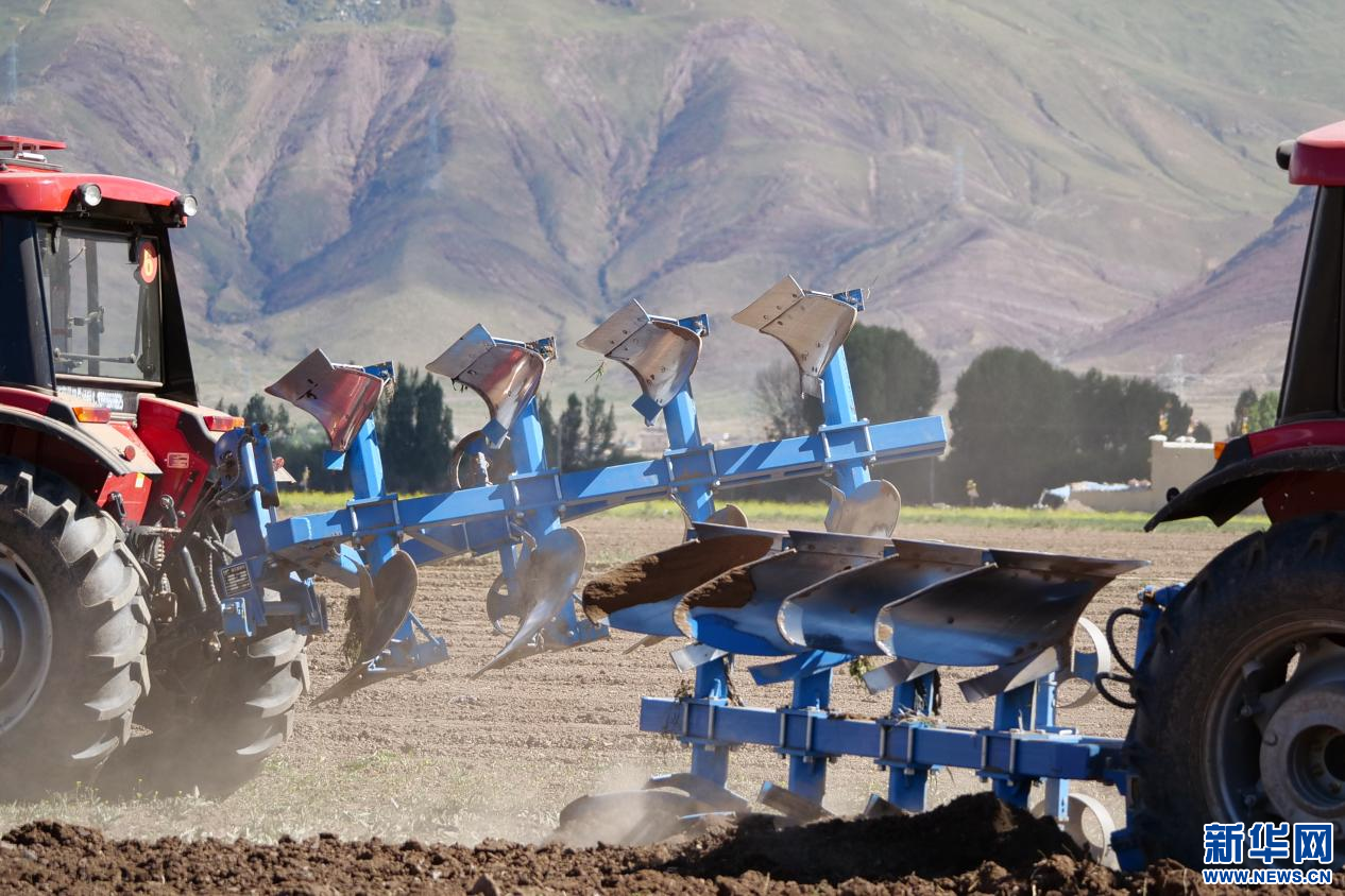6月20日,甘曲鎮(zhèn)江角村農(nóng)機合作社的農(nóng)機在進行播種。新華網(wǎng) 旦增努布 攝
