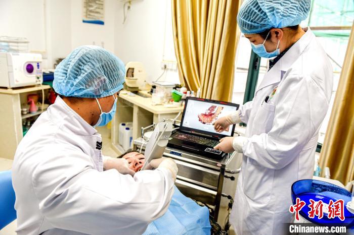 圖為醫(yī)生正在對患者進(jìn)行口內(nèi)掃描采集數(shù)據(jù)。彭毅 攝