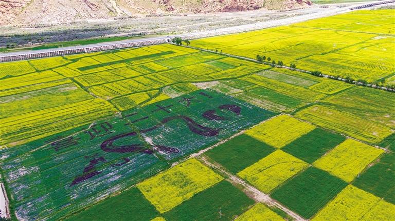 墨竹工卡縣農(nóng)業(yè)農(nóng)村局相關(guān)負(fù)責(zé)人告訴記者,這次的創(chuàng)意油菜花田和往年相比大不相同,為了迎接黨的二十大勝利召開,他們?nèi)α?00畝地人工種植了專門引進的四種彩色油菜花歷時兩個多月它們開花啦!看出這是什么圖案了嗎?現(xiàn)在記者給你揭曉(最上面是喜迎二十大字,字下中間是哈達(dá)、左邊是代表松贊干布和文成公主,右邊是愛心)。怎么樣,大家看出來了嗎?現(xiàn)在扎西崗村的創(chuàng)意油菜花都開了,從現(xiàn)在開始到接下來的半個月都是賞花期,一起去打卡墨竹工卡縣鄉(xiāng)村觀賞小油菜花的勝地吧,喜歡攝影的朋友更不能錯過哦!
