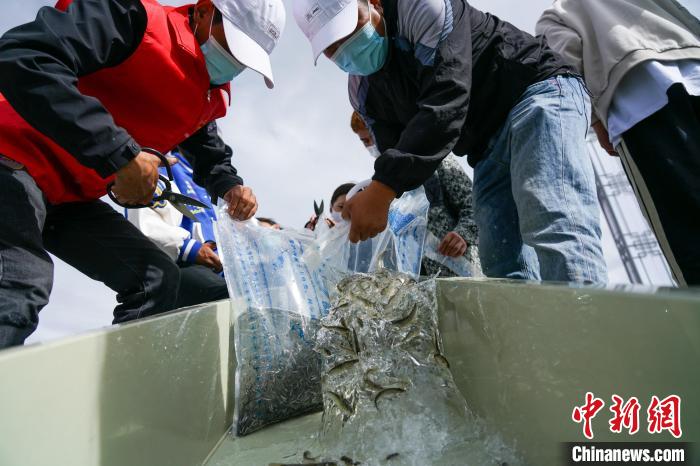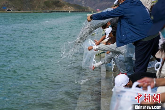 圖為西藏特有魚類增殖放流活動現(xiàn)場。 江飛波 攝