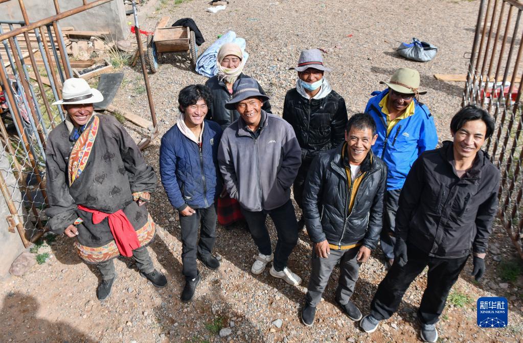 雙湖縣多瑪鄉(xiāng)果根擦曲村的牧民在一起搬家時合影留念(7月13日攝)。新華社記者 晉美多吉 攝