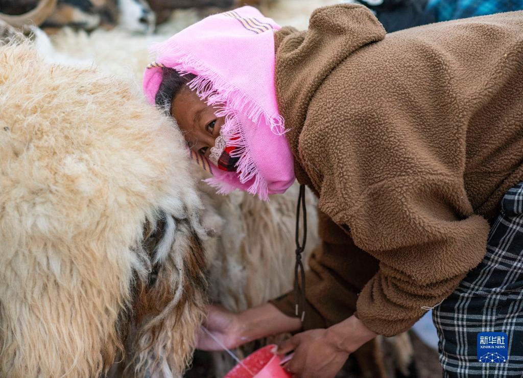 在雙湖縣多瑪鄉(xiāng),石秀措姆在擠奶(7月19日攝)。新華社記者 呂秋平 攝