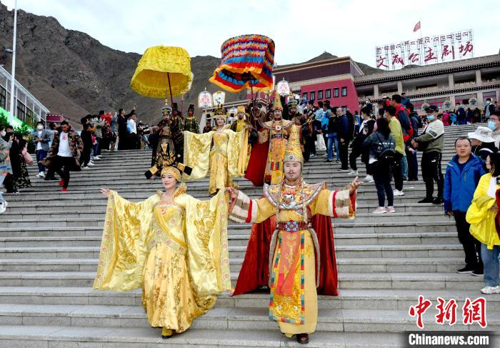 當(dāng)晚,《文成公主》的演員們身著特色民族舞蹈服飾現(xiàn)身劇場外,巡游在慈覺林藏院風(fēng)情街,重現(xiàn)“公主”與“贊普”的和親盛況,并與來自五湖四海的觀眾近距離接觸,切身感受非比尋常的西藏文化。