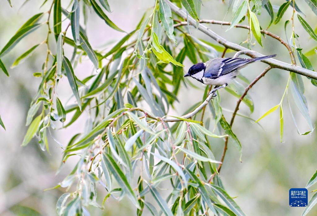 在拉薩市一家單位的院內(nèi),一只小鳥(niǎo)落在枝頭(8月15日攝)。新華社記者 張汝鋒 攝