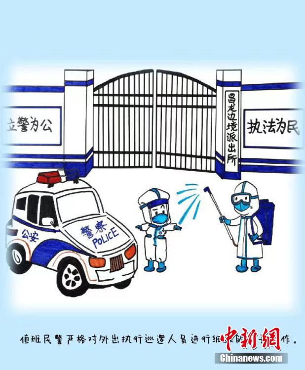 來自四川省宜賓學(xué)院的沈文靜是西藏日喀則邊境管理支隊(duì)昌龍邊境派出所教導(dǎo)員胡浩的妻子,7月26日來隊(duì)探親,此后遭遇西藏疫情暴發(fā)。在派出所抗疫期間,沈文靜拿起畫筆,將奮戰(zhàn)在抗疫一線的移民管理警察身影描繪記錄下來,用漫畫的方式生動再現(xiàn)西藏移民管理警察的戰(zhàn)“疫”人物群像。沈文靜 繪 龍小鳳 文
