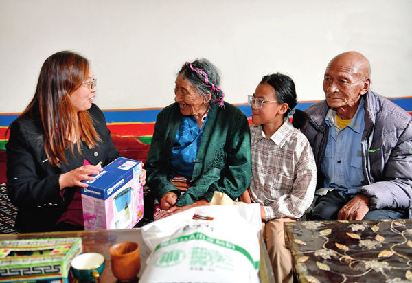 入戶走訪的過程中,王玉秀收獲了許多藏族老百姓的信任和喜愛。援藏結(jié)束前,她專門去看望在日喀則市謝通門縣初村結(jié)識的次仁和格桑桑珠,還為他們留下生活用品和現(xiàn)金。臨別時,次仁感動地說:“能有這么一位‘親戚’,我們真的很高興。”