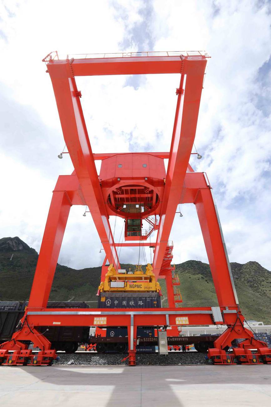 林芝站貨場內,集裝箱門吊不停的作業(yè),一車車貨物不停的裝運,一個個忙碌的身影也清晰可見,他們用堅守換來拉林鐵路貨物的安全運輸,也為林芝市物資保障貢獻了一份力量。