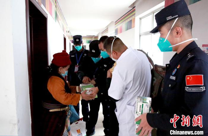 移民管理警察為駐地敬老院尼瑪頓珠老人解說(shuō)腸胃藥的服用說(shuō)明。 肖富貴 攝