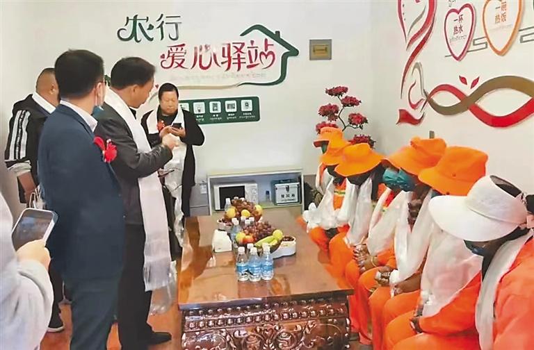 農(nóng)行日喀則分行在臨街網(wǎng)點(diǎn)設(shè)立“農(nóng)情暖域——愛心驛站”,為戶外勞動(dòng)者提供便民服務(wù)。