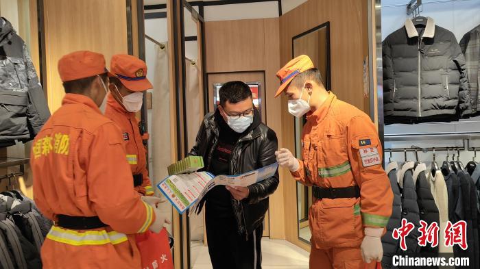 消防隊員正在向商家講解防火知識?!≡辣蟆z