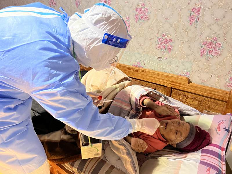 圖為李韜韜上門為臥病在床老奶奶上門做核酸。