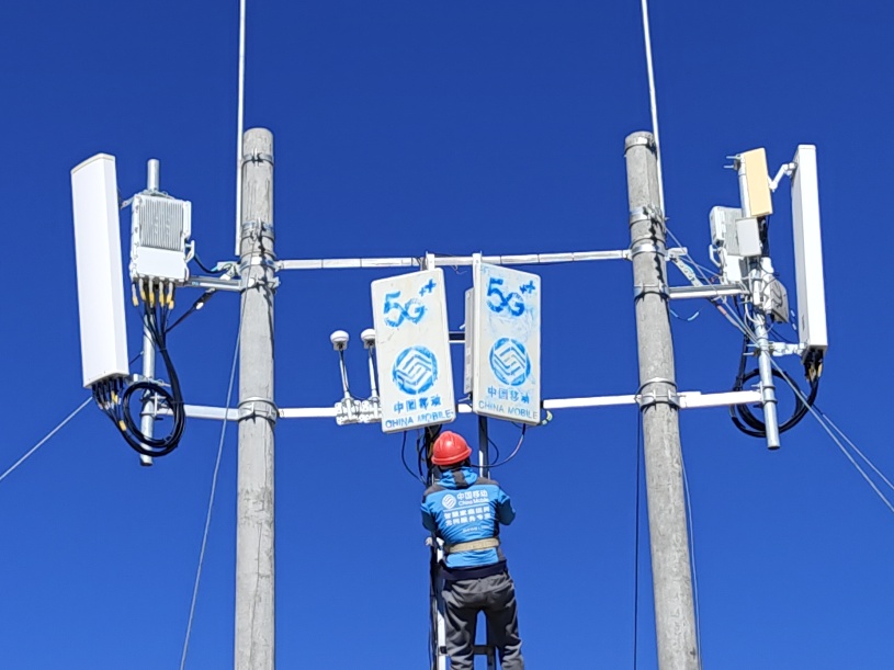 中國移動(dòng)西藏公司對(duì)全國海拔最高鄉(xiāng)浪卡子縣普瑪江塘鄉(xiāng)5G基站進(jìn)行調(diào)測(cè)。