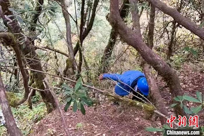 圖為西藏林芝波密縣10千伏“蓋塔線”巡線員工穿越原始森林?!?guó)網(wǎng)波密縣供電服務(wù)中心 供圖