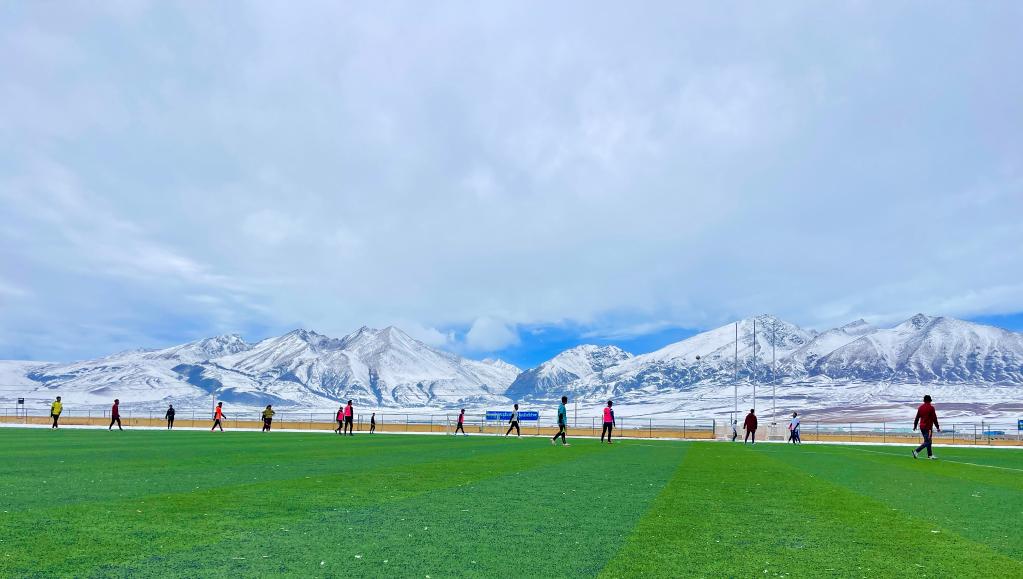 那曲聶榮縣小學的學生們正在踢足球(4月20日攝)