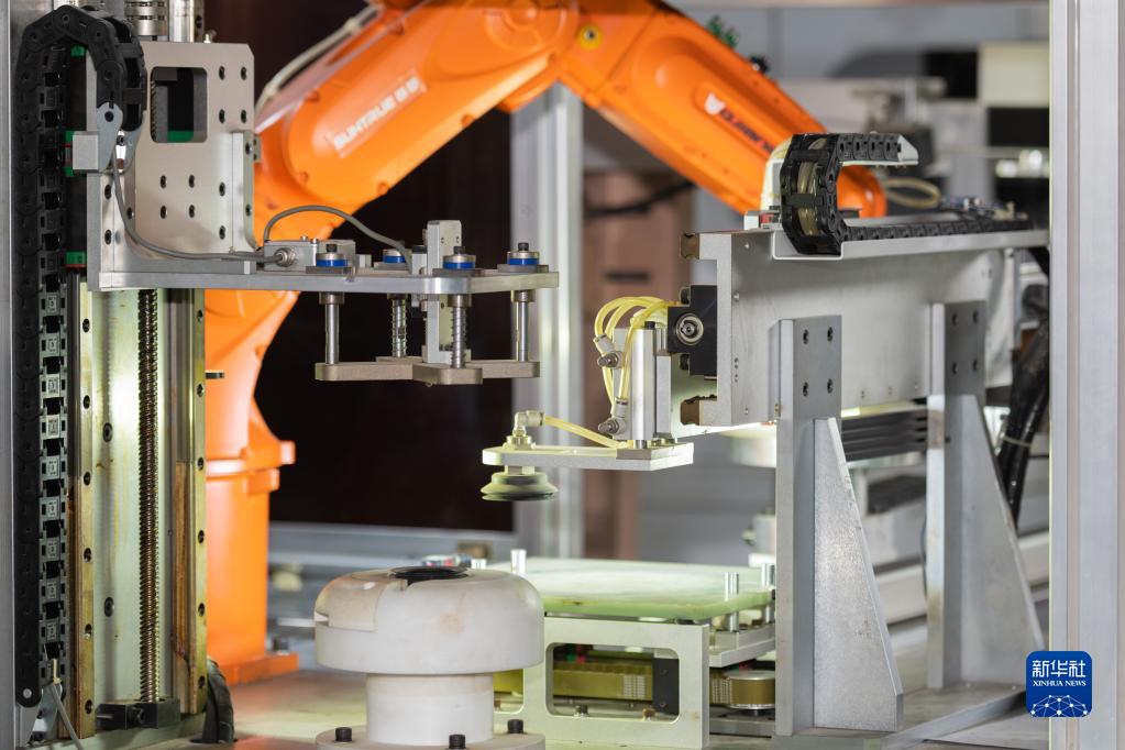 這是11月27日在拉薩市一家工廠內(nèi)拍攝的高原地區(qū)多功能烹飪炊具不粘鍋產(chǎn)品全機(jī)械自動(dòng)化生產(chǎn)線的設(shè)備。新華社記者 黃耀漫 攝