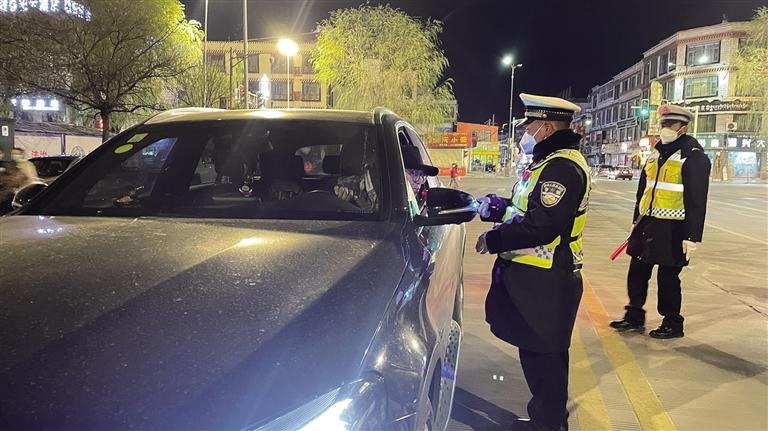 拉薩冬日的夜晚寒風(fēng)凜冽。夜色中,一輛輛汽車有序通行,街道又恢復(fù)了往日的熱鬧。當(dāng)天晚上9時(shí)許,記者跟隨拉薩市公安局交警支隊(duì)執(zhí)法監(jiān)督大隊(duì)民警前往江蘇大道,城南大隊(duì)的民警已經(jīng)設(shè)置好路障、標(biāo)牌,正在對(duì)過往車輛逐一進(jìn)行詳細(xì)排查?!澳茫?qǐng)出示駕照?!薄澳茫?qǐng)吹氣?!痹诿窬闹笓]下,車輛有序通過檢查點(diǎn)。市民扎西多吉駕車經(jīng)過檢查點(diǎn)后告訴記者,在這么冷的天氣里,交警依然堅(jiān)守在路面上,確實(shí)令人敬佩,應(yīng)該為他們點(diǎn)贊?!拔視?huì)牢記‘開車不喝酒,喝酒不開車’,也會(huì)自覺遵守交通法律法規(guī),文明出行?!痹鞫嗉f。
